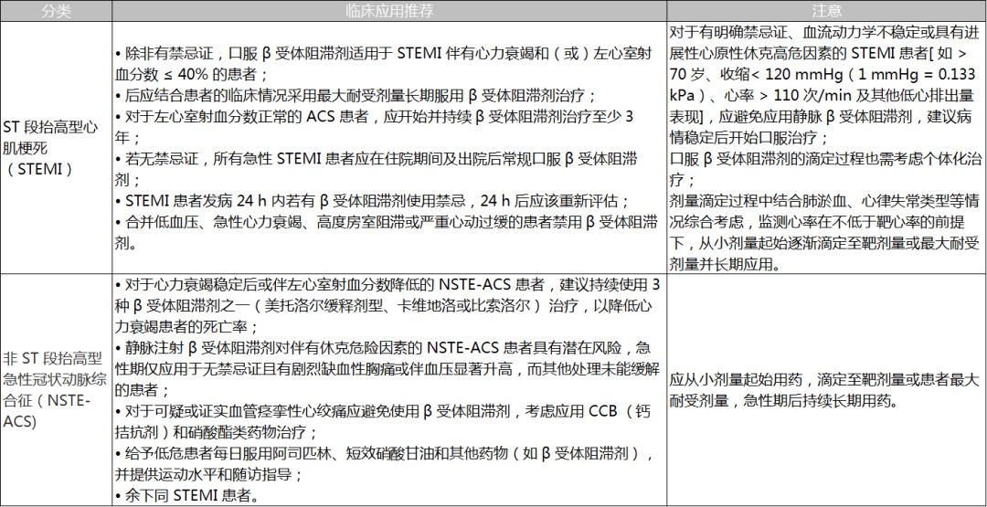 2020 年 2 月最新发布的《应用 β 肾上腺素能受体阻滞剂规范治疗冠心病的中国专家共识》明确了冠心病患者 β 受体阻滞剂使用应遵循的 BETA 原则,就不同患者人群使用 β 受体阻滞剂给出了明确建议。